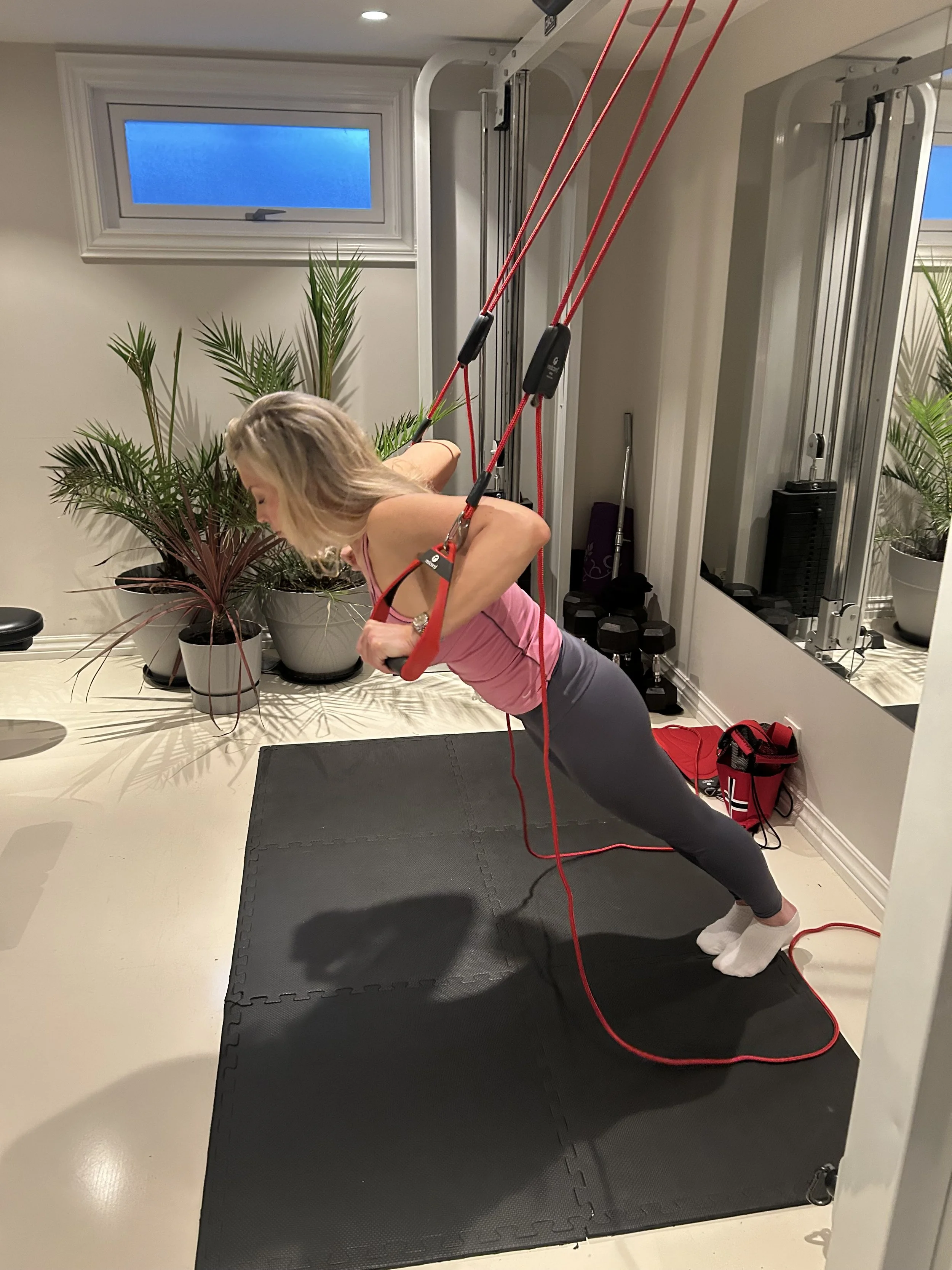 Nå har jeg montert Redcord-utstyr hjemme og bruker det flere ganger i uken som en del av styrketreningen.